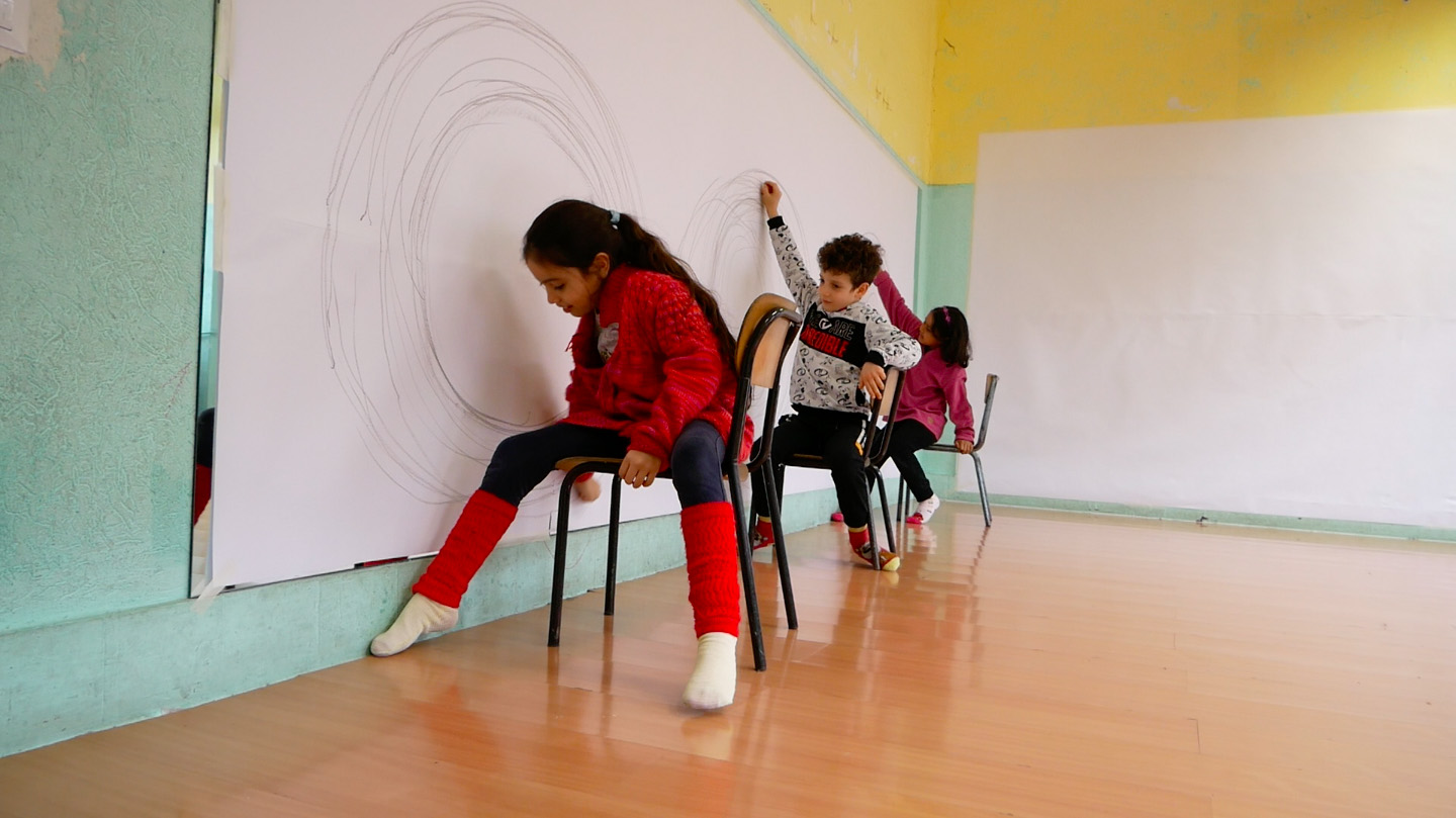 ¿Quién ha dicho que se debe dibujar sentado? Puedes dibujar con todo el cuerpo: corriendo, saltando, riendo. Puedes dibujar sin mirar, dibujar con el cuerpo del otro, dibujar con la voz para así dibujar en el aire. Los talleres de Segni mossi están pensados para superar el miedo a no saber dibujar, entender el cuerpo como una herramienta comunicativa y estimular el pensamiento crítico y la sensibilidad estética.